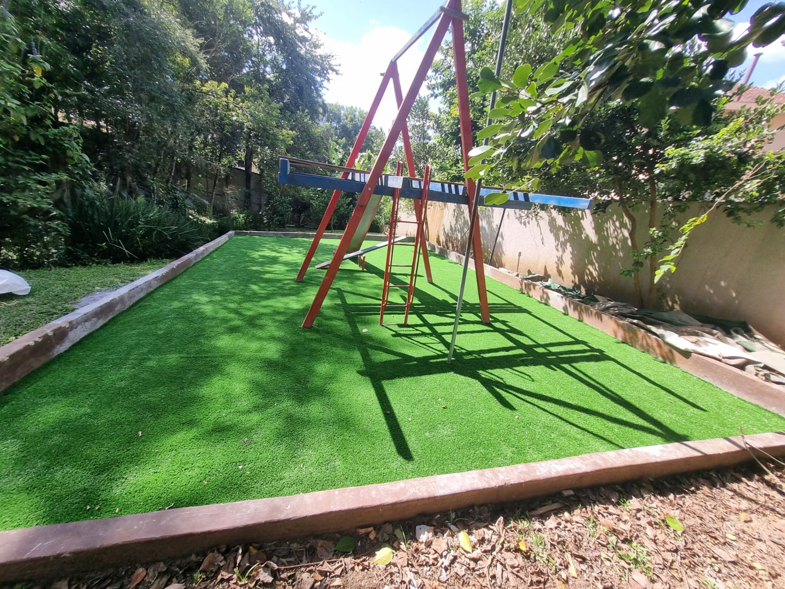 Grama sintética segura e resistente para playgrounds, garantindo diversão e conforto para as crianças.